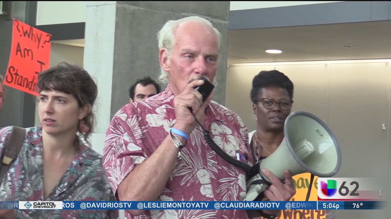 Un grupo de activistas llegaron hasta el Centro de Convenciones de Austin para protestar durante la Cumbre de Equidad de Vivienda, donde se reunían líderes locales, para pedir se eliminen tres ordenanzas que criminalizan las personas en situación de calle.