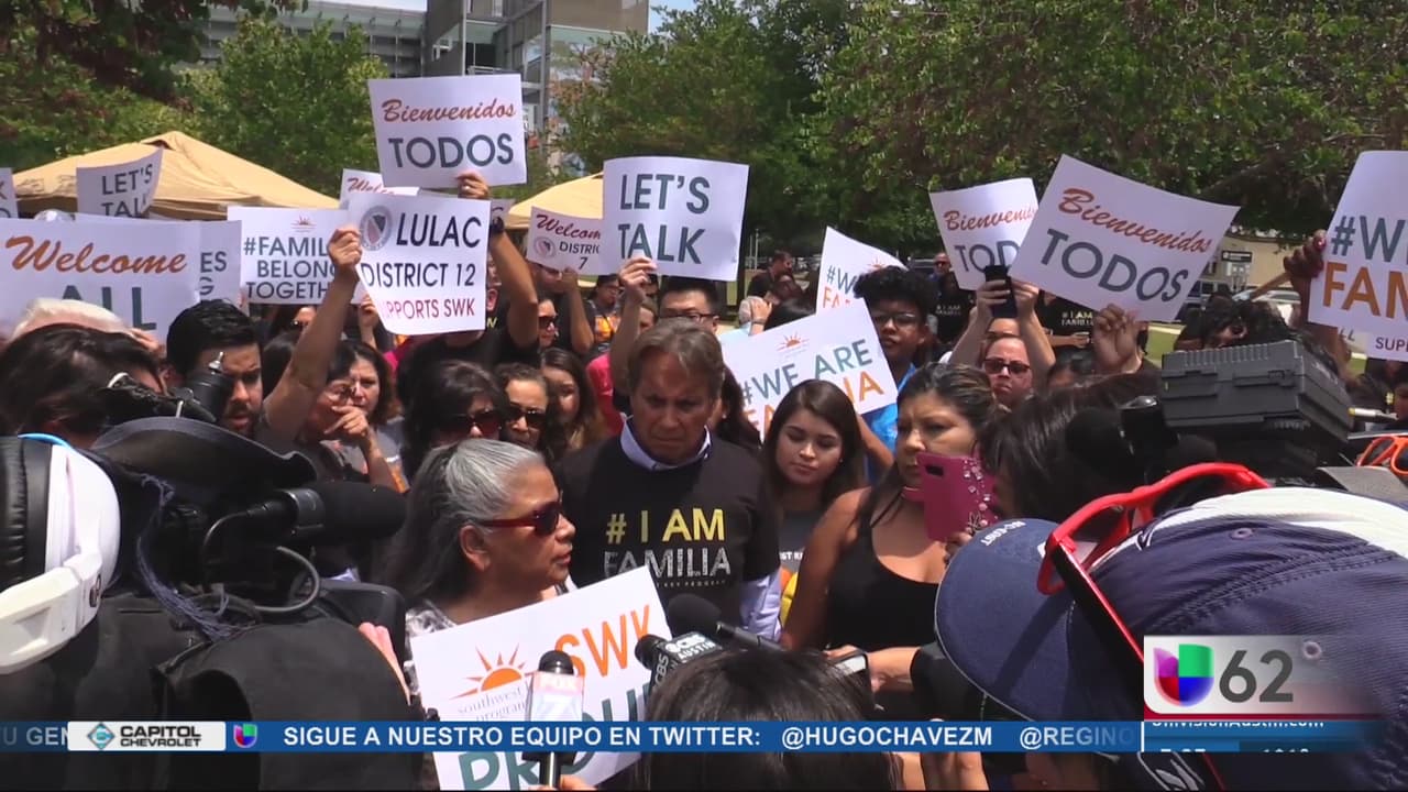 Decenas de personas se manifestaron en contra de Southwest Key por su colaboración con la administración de Trump, al tiempo que el fundador, Juan Sanchez, confrontó a los manifestantes.