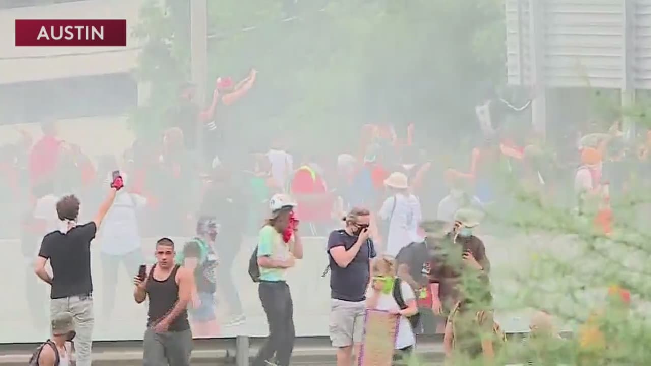 Por tercer día consecutivo, la capital tejana tuvo este domingo nuevas protestas que comenzaron pacíficas. Más tarde se reportó el cierre de la I-35 por manifestantes y la policía intervino.