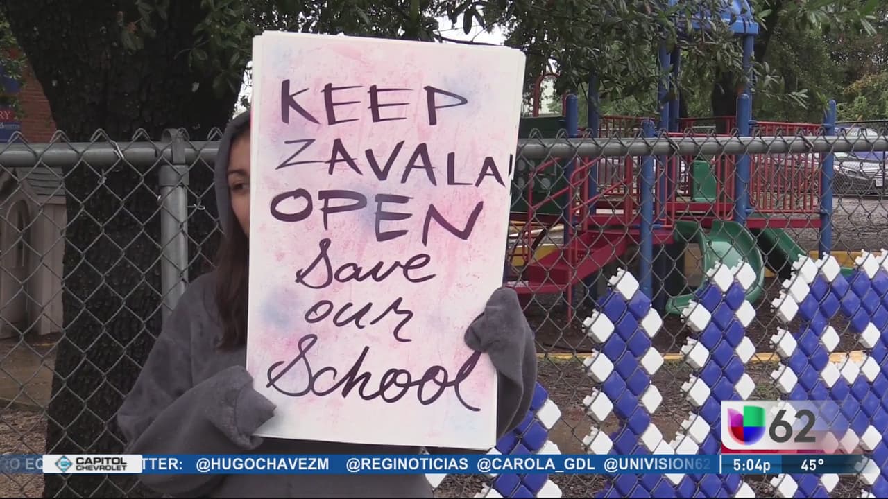 Decenas de padres de familia y activistas se manifestaron afuera de la primaria Zavala, para pedirle al distrito escolar de Austin la mantenga abierta y no se consolide junto a la escuela Meets al plantel Sánchez, el cual entró en el plan de modernización.