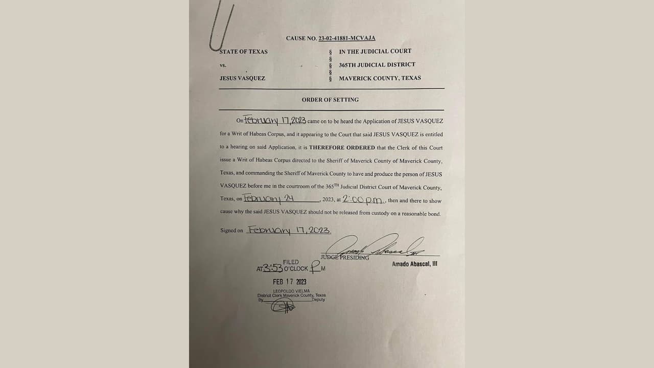 Un documento proporcionado a Univision 41, cita que el pasado 17 de febrero, Vásquez solicitó la medida a una corte judicial del Condado de Maverick.
