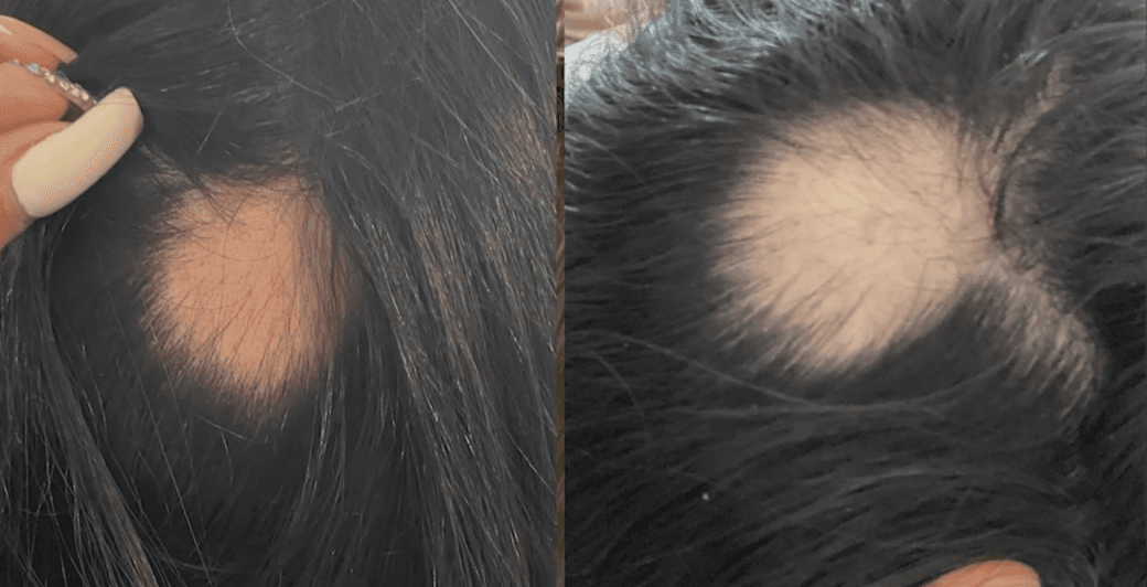 Doubront se percató de la pérdida de cabello cuando sus amigas estaban peinándola y le dijeron que “tenía un hueco” vacío en su cuero cabelludo. Desde entonces, sigue el tratamiento recetado por médicos para ayudar a recuperar su pelo.