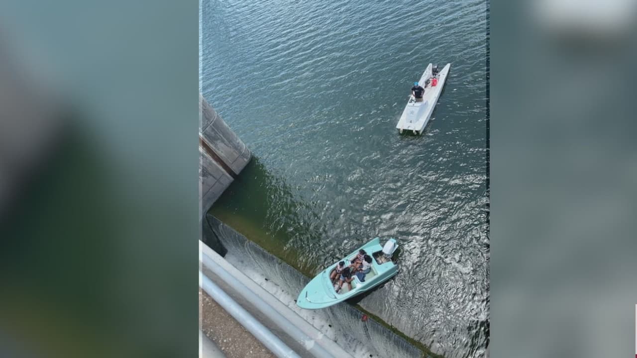 El Servicio de Emergencias Médicas del condado de Austin-Travis y el Departamento de Bomberos de Austin ayudaron a rescatar un bote que estaba a punto de pasar por la presa Longhorn con pasajeros a bordo en el lago Lady Bird en el este de Austin el jueves.
