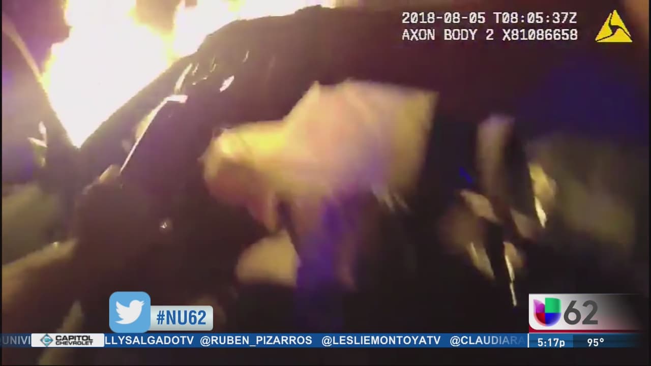 Quedó captado en video el momento en que un oficial arriesga su vida para salvar a un hombre atrapado en un auto en llamas, tras accidentarse contra un poste de servicios públicos en Atlanta.