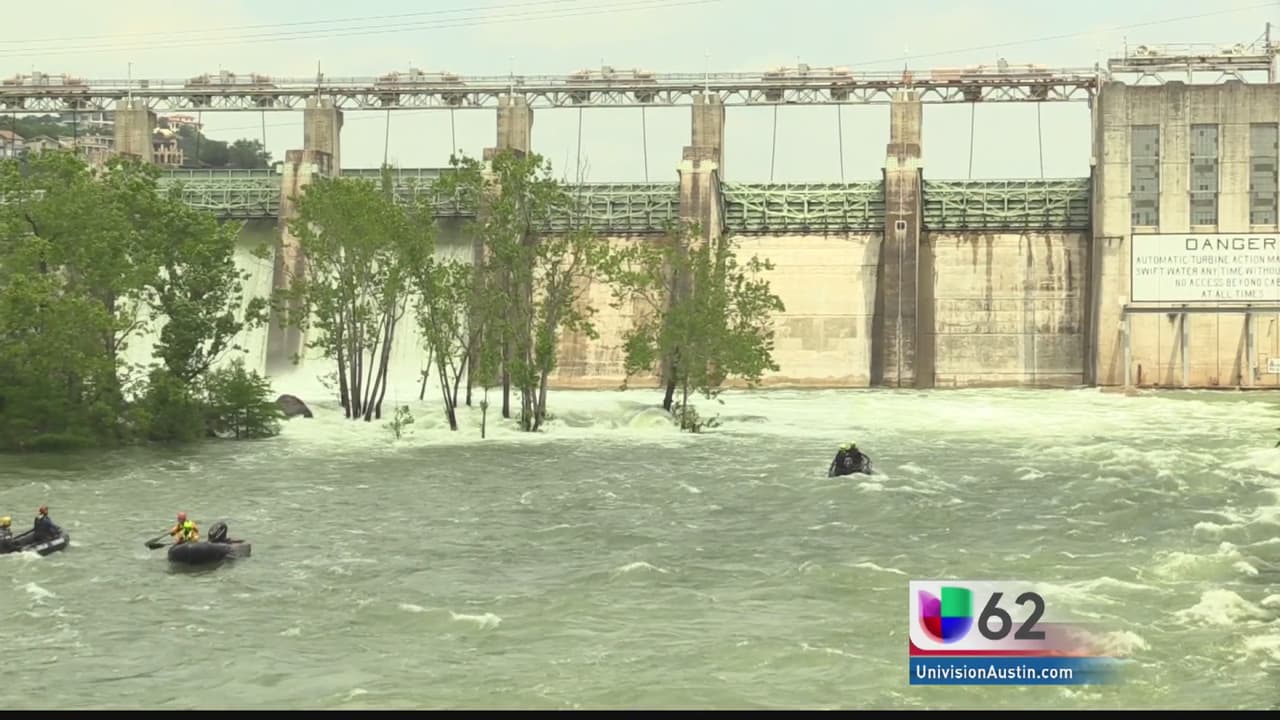Rescatistas utilizan los altos niveles de agua en el lago Lady Bird para entrenar