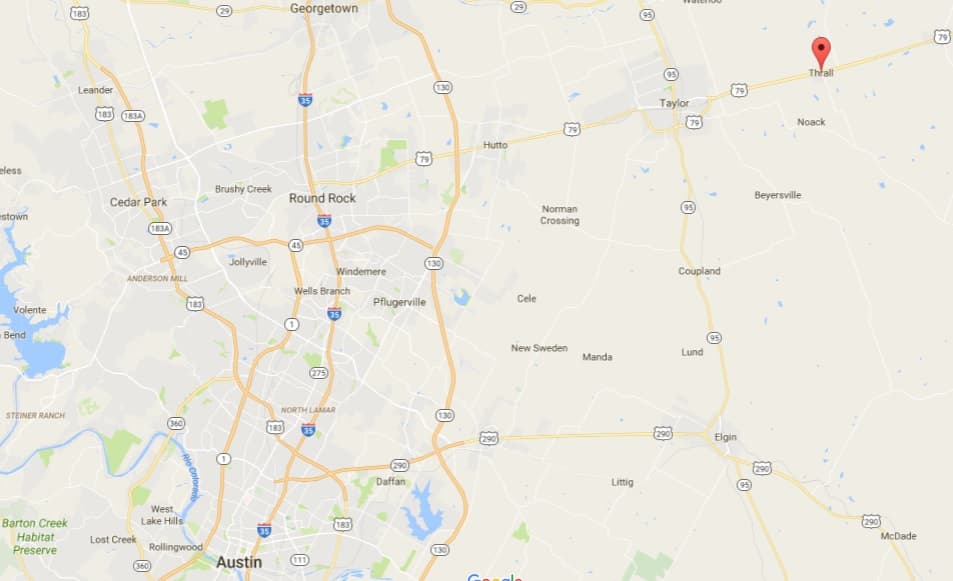 En el este del condado Williamson se registraron dos tornados: el primero al sur de la carretera 79 del sur de Taylor a Thrall y el segundo al norte/noreste de Thrall.