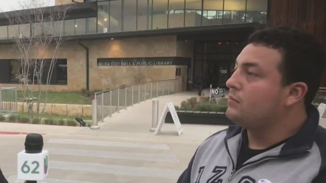 César Flores salió hasta el ayuntamiento de Buda en el condado Hays, donde se ubica un centro de votación con mucha afluencia, allí los votantes aseguran hay largas filas de casi 45 minutos.