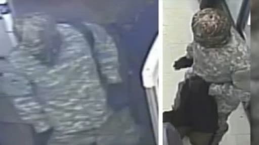 El sospechoso vestido de camuflaje llegó a una tienda Family Dollar el pasado 17 de diciembre y apuntó a la cajera con un arma semiautomática exigiéndole el dinero. Se cree puede ser un hombre hispano o afroamericano. Si lo identifica, denúncielo.