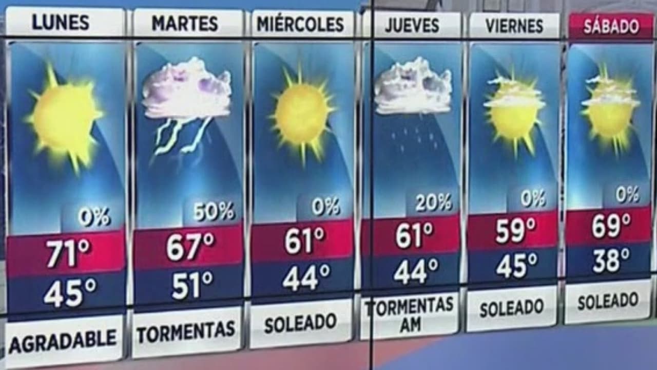 A partir de la tarde de este lunes se esperan precipitaciones, mientras que las temperaturas máximas continuarán en niveles superiores a los 70 grados.