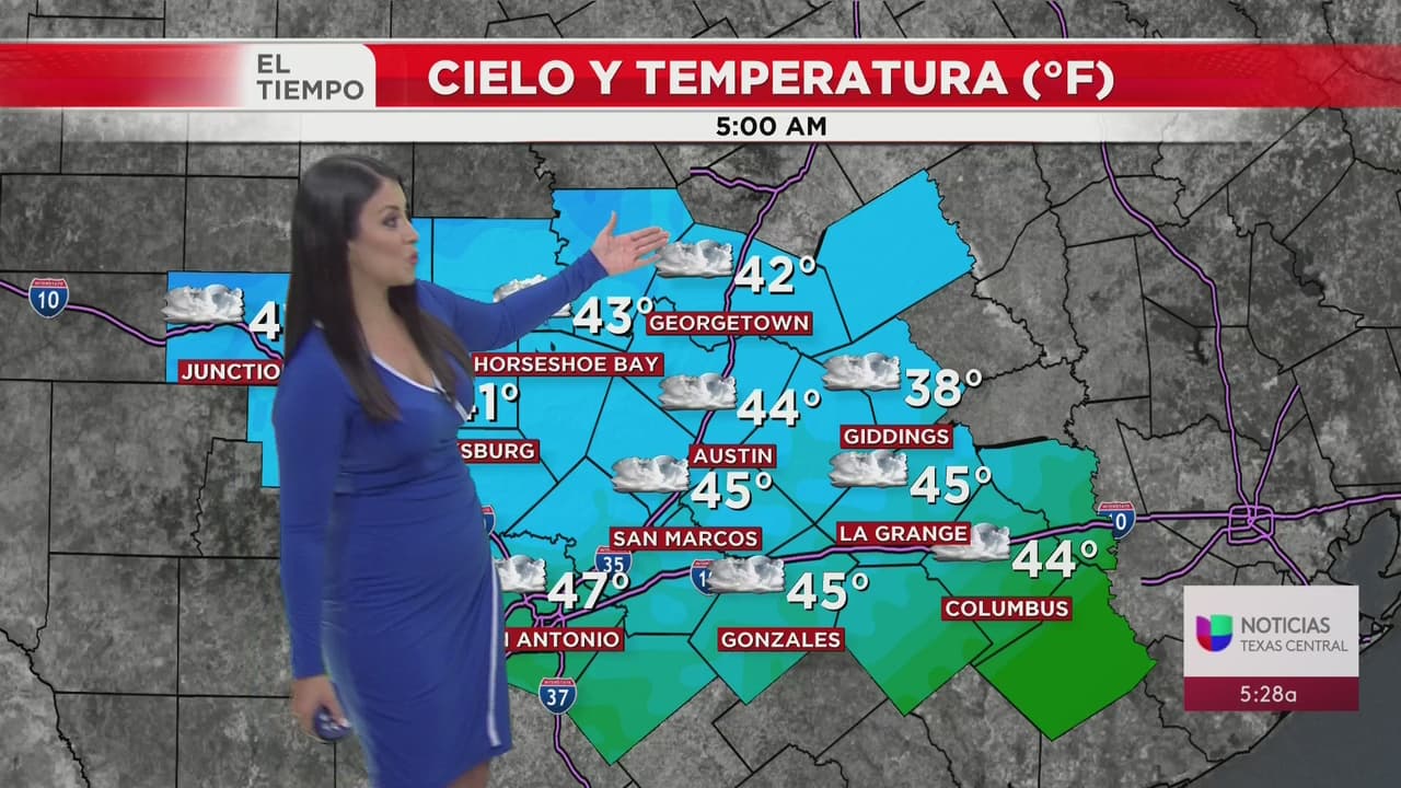 De acuerdo con el Servicio Nacional de Meteorología, se espera buen tiempo el jueves y viernes con temperaturas muy por debajo de lo normal. Las áreas en Hill Country, así como los lugares bajos a lo largo del corredor I-35 al noreste podrían registrar temperaturas heladas el viernes por la mañana.