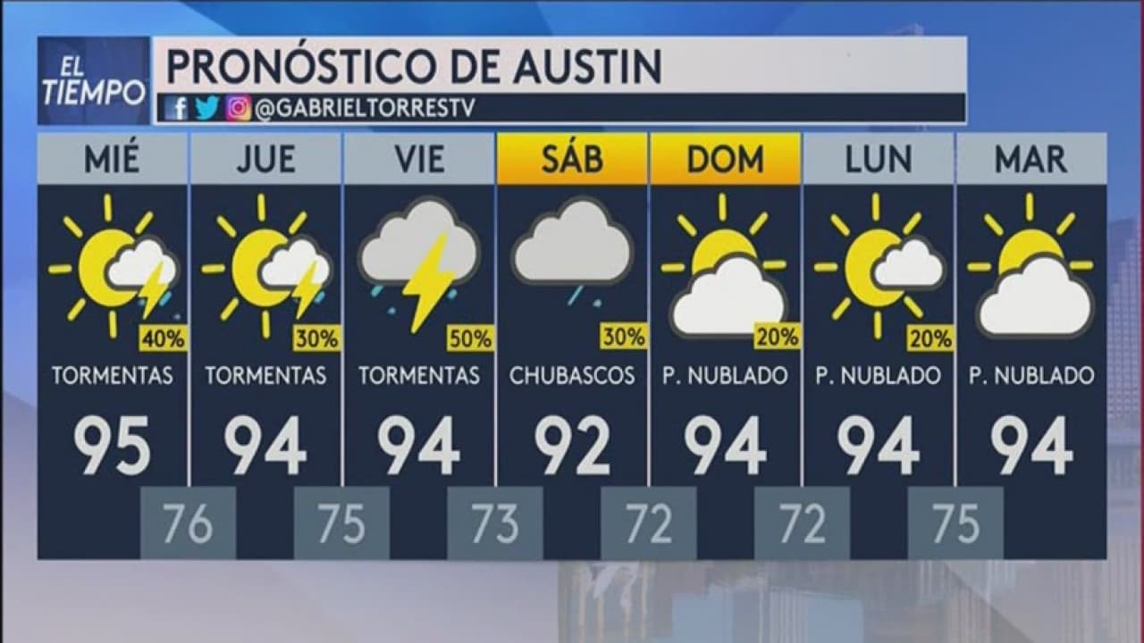 Durante la tarde se pronostican intensas lluvias en zonas como Austin, Cameron y La Grange. Las temperaturas máximas llegarán a los mediados 90 grados.