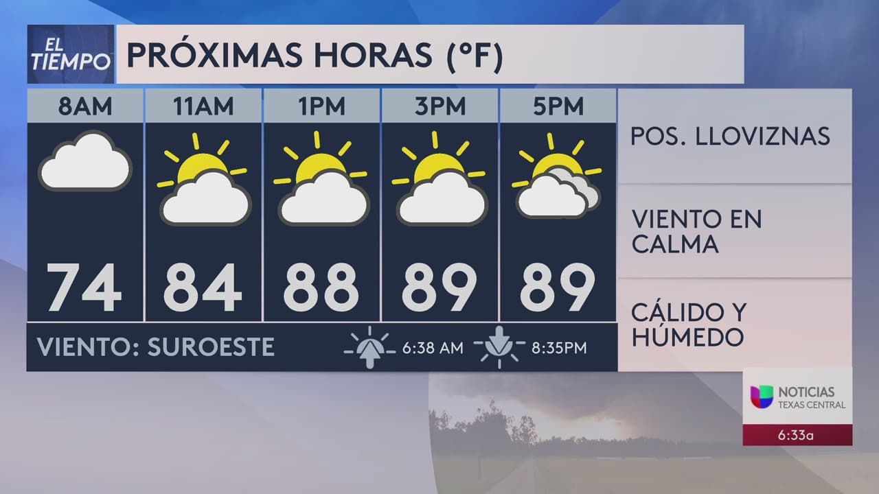 Se esperan tormentas aisladas o dispersas en gran parte del centro de Texas. Las temperaturas máximas alcanzarán los 80 grados hasta mediados de los 90.