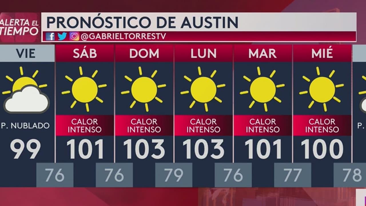 Prepárese para un día con temperaturas extremas en la capital texana con temperaturas máximas de 99°F para el fin de semana el mercurio sube a niveles peligrosos con máximas de hasta 103°F.