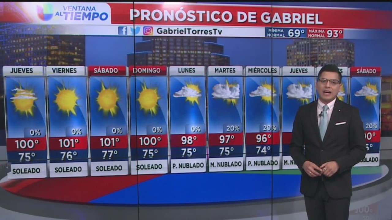 Prepárese para un día con cielos despejados y abundante sol, se espera que el termómetro alcance los 100 grados Fahrenheit. Manténgase muy bien hidratado.