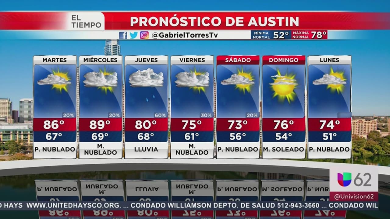 Prepárese para un día con ligera nubosidad en la región y temperaturas máximas de 80 grados Fahrenheit, se espera que el día más caluroso de la semana sea el miércoles.