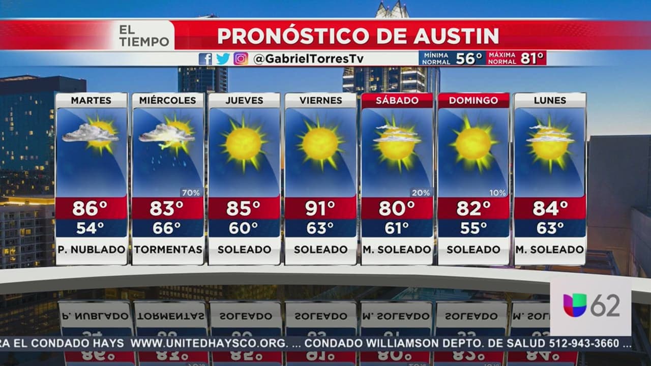 Será un día con ligera nubosidad en la región, pero condiciones secas y temperaturas máximas de 86 grados Fahrenheit, para el miércoles podrían presentarse las lluvias.