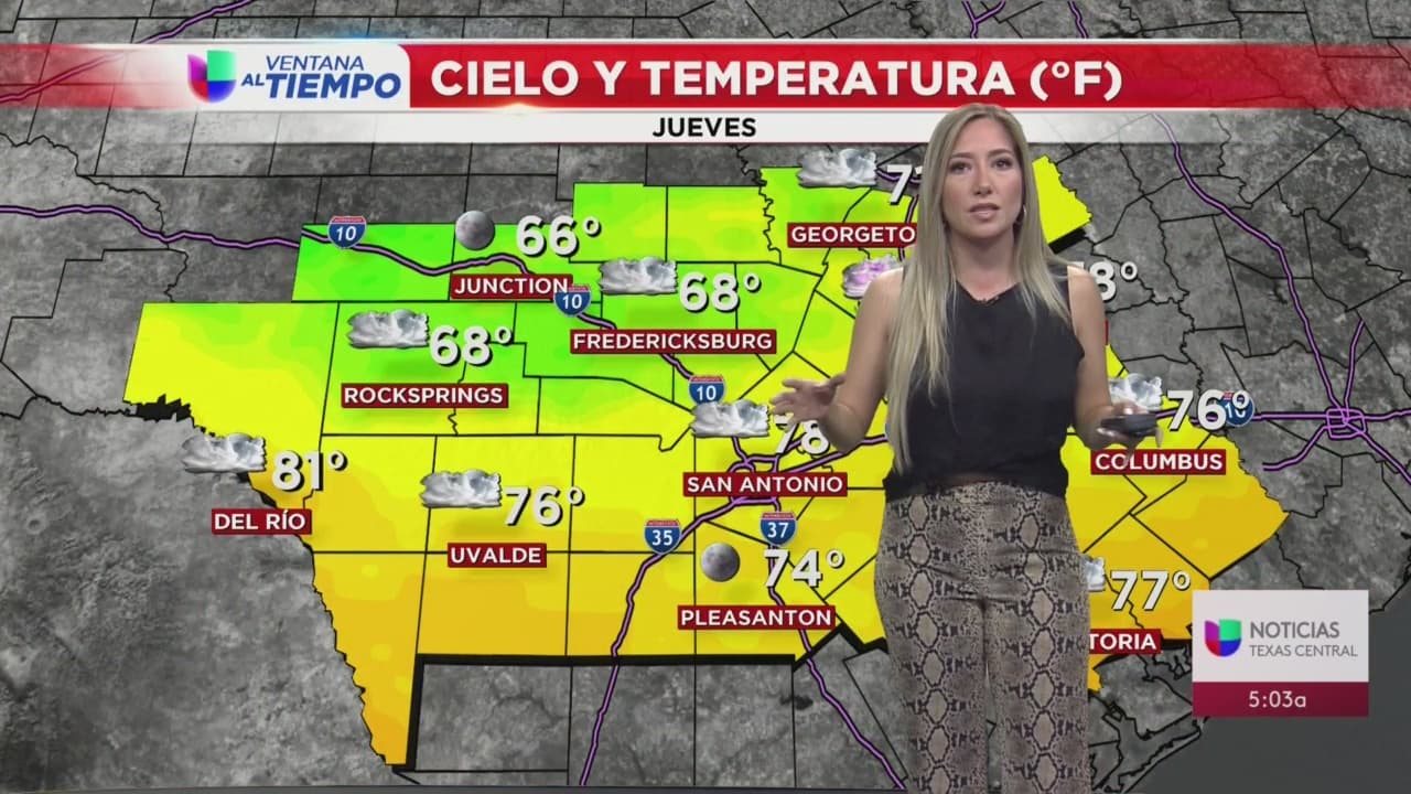Carolina Vela nos habla sobre las condiciones del tiempo que se esperan en Austin y San Antonio este jueves y el resto de la semana. Se prevé que el fin de semana se mantenga nublado con poca probabilidad de lluvia.
