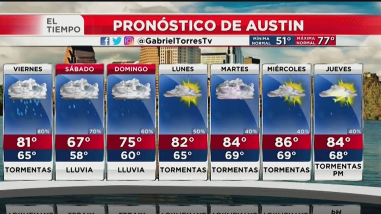 Prepárese para un viernes con cielos nublados y tormentas intensas, se espera que el mercurio alcance máximas de 81 grados Fahrenheit.