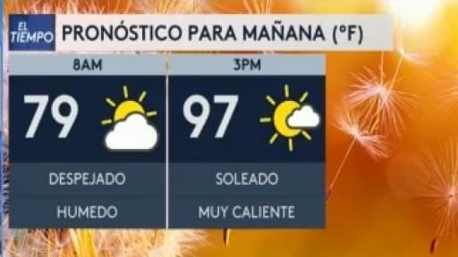 El jueves será un día mayormente soleado con temperaturas cálidas desde las primeras horas del día, se esperan máximas de hasta 97 grados Fahrenheit.