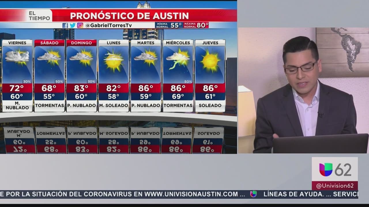 Se prevé un día con cielos nublados en la capital texana con temperaturas máximas de 72 grados, para el fin de semana podrían regresar las lluvias.