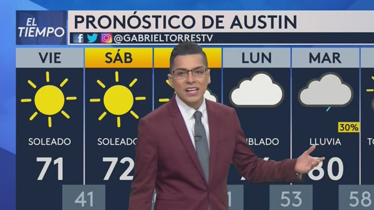 Finaliza la semana laboral con cielos soleados y condiciones agradables para la capital texana con temperaturas mínimas de 41°F y máximas de 71°F.