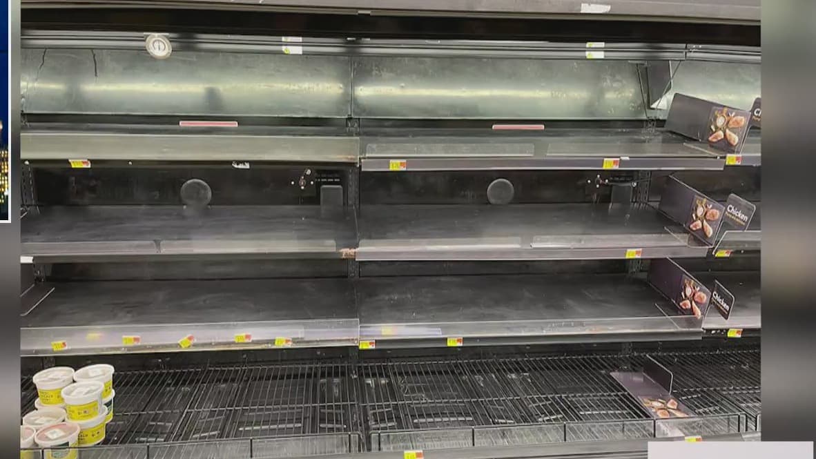 Varios supermercados muestran estantes vacíos luego de que texanos se han lanzado a comprar alimentos como preparación por las condiciones del tiempo.