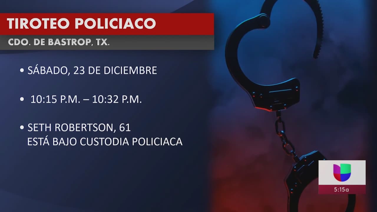 Al llegar policías de Bastrop en dos unidades, alrededor de las 22:32 horas, fueron recibidos por Robertson a balazos, quien disparó contra los dos oficiales.