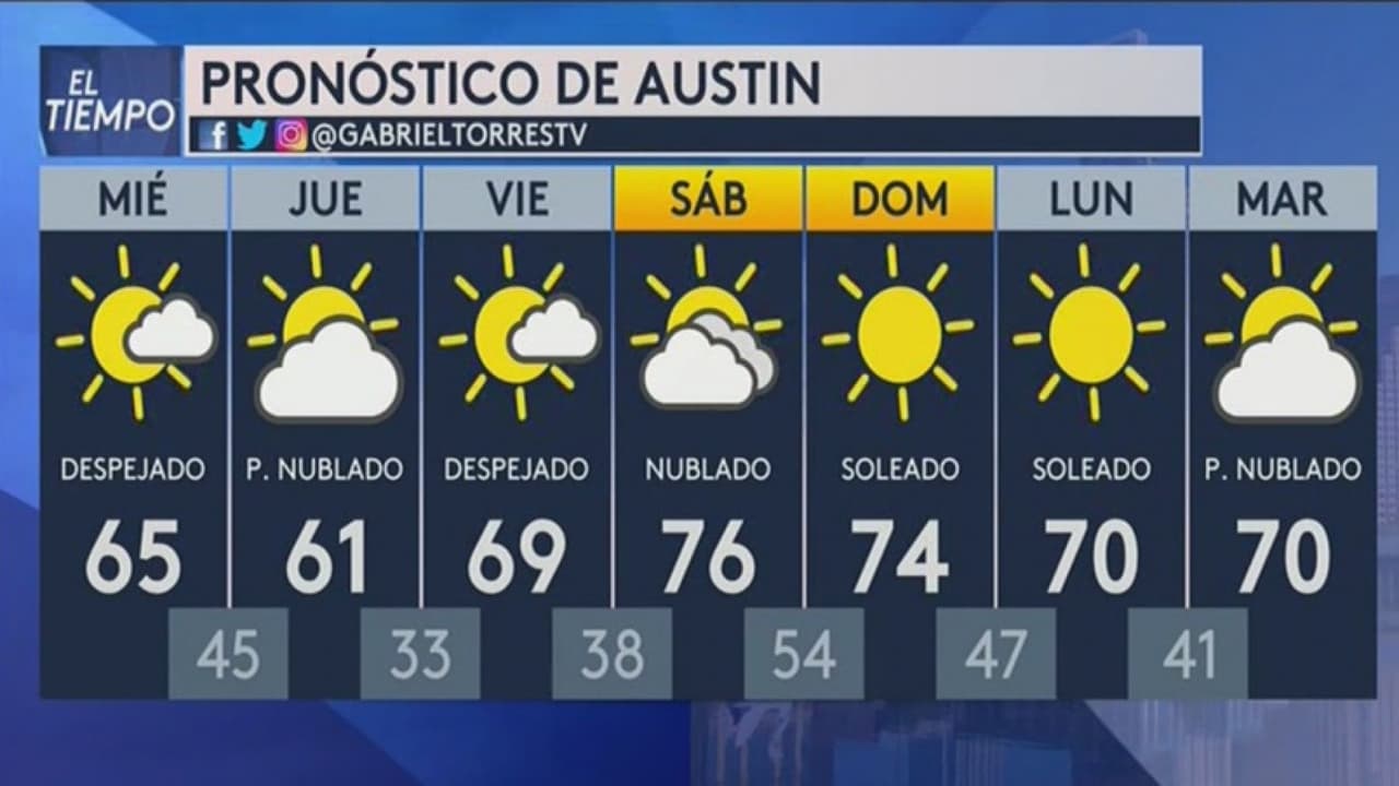 Espera condiciones frescas a partir de esta noche, con vientos moderados y temperaturas máximas de 65 grados Fahrenheit para este miércoles.