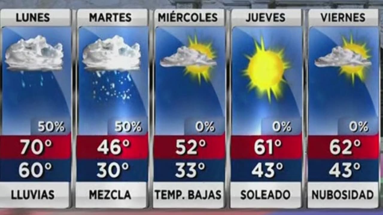 Se espera que la probabilidad de lluvia esté en 50%, con condiciones nubladas y temperaturas máximas de 70 grados, con tendencia a la baja.