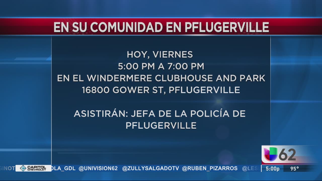 Univision 62 Austin llega a Fplugerville para convivir con las personas de la comunidad. Este viernes en el Windermere Club and Park, donde además asistirá el jefe de la policía entre otros servicios.