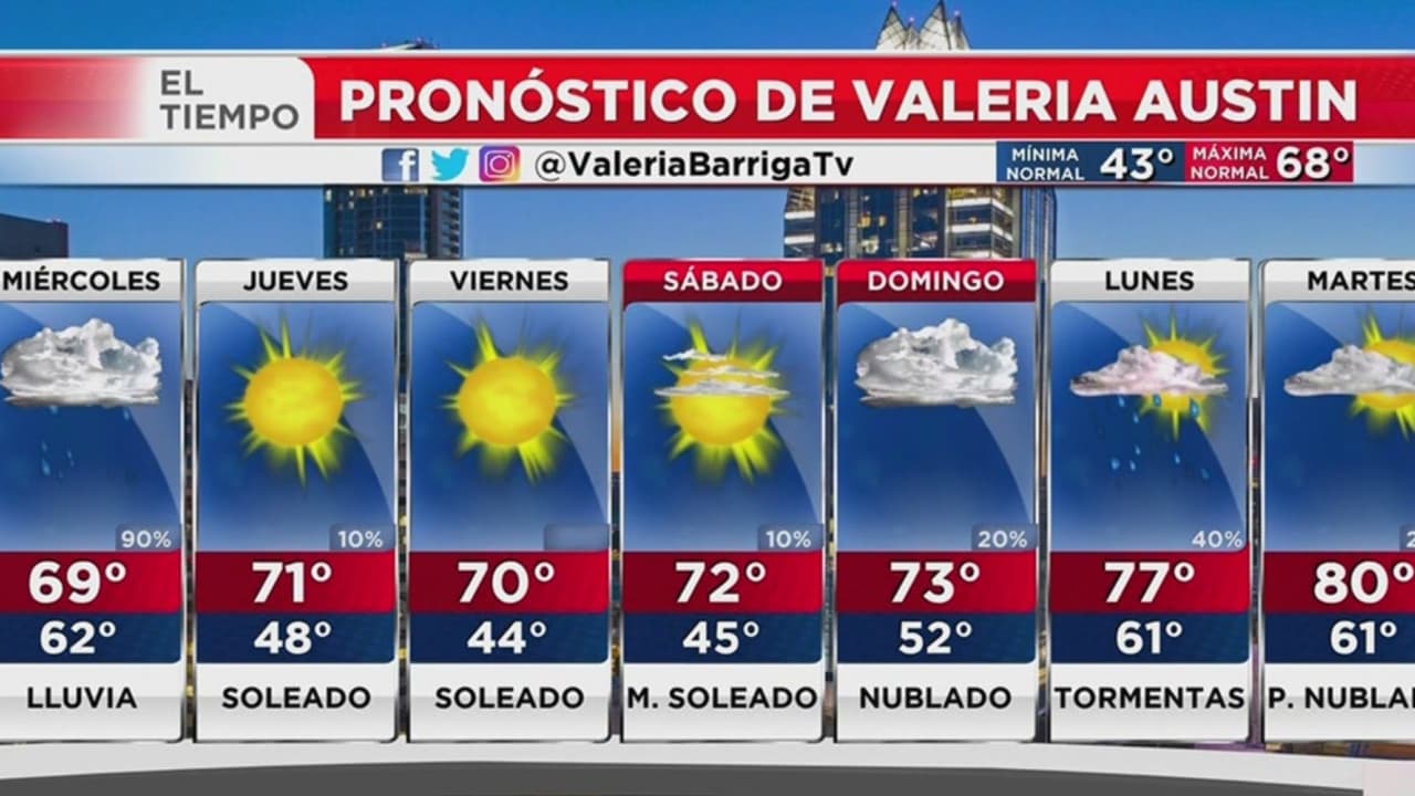 Espere temperaturas alrededor de los 80 grados Fahrenheit con posibles tormentas a partir de esta noche.