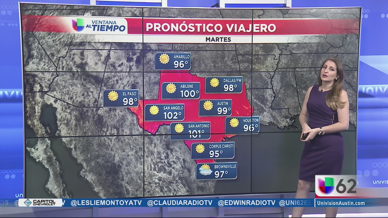 Un inicio de semana con altas temperaturas en todo el estado de Texas, para mañana martes se espera una máxima de 99 grados en Austin. Manténgase bien hidratado.
