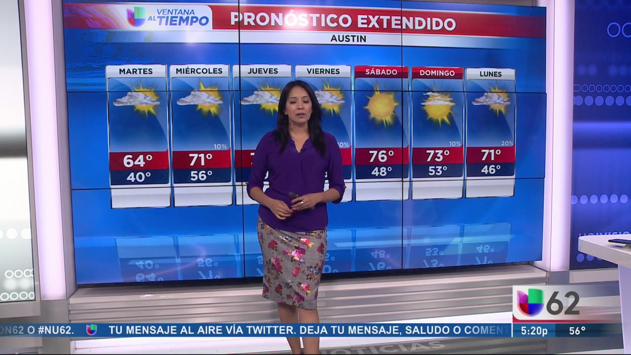 Un inicio de semana con un ligero descenso en la temperatura, para esta noche se espera una mínima de 33 grados en Austin, para este martes se esperan cielos despejados y al amanecer una mínima de 40 grados. Manténgase abrigado.