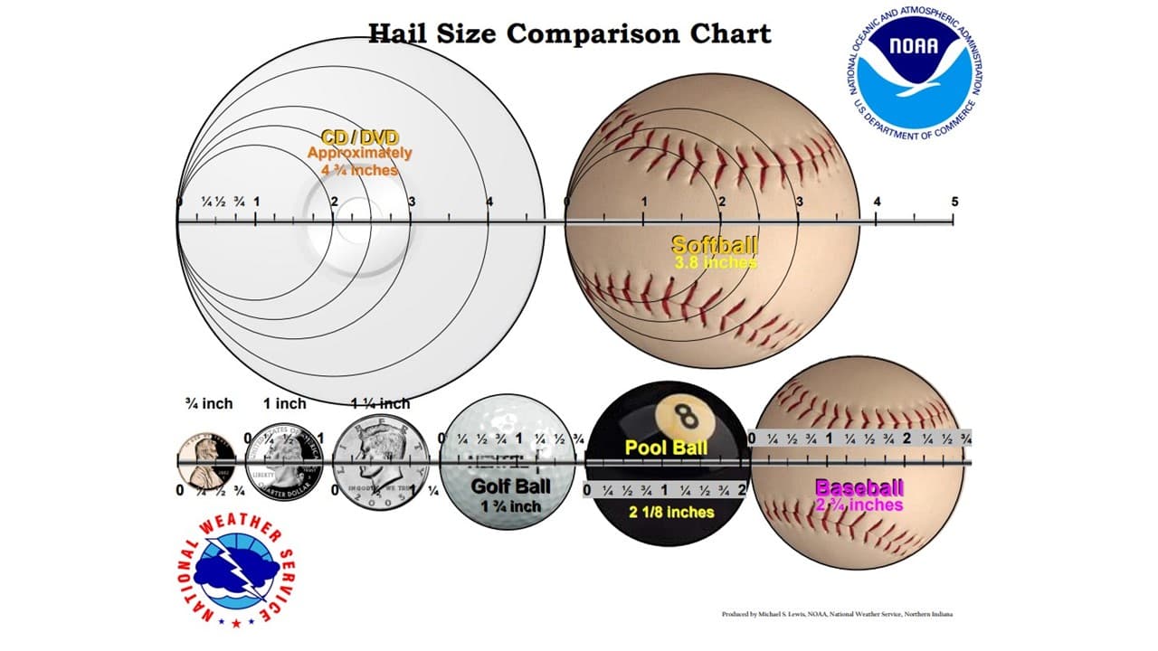 Aquí un desglose de las medidas de los granizos: