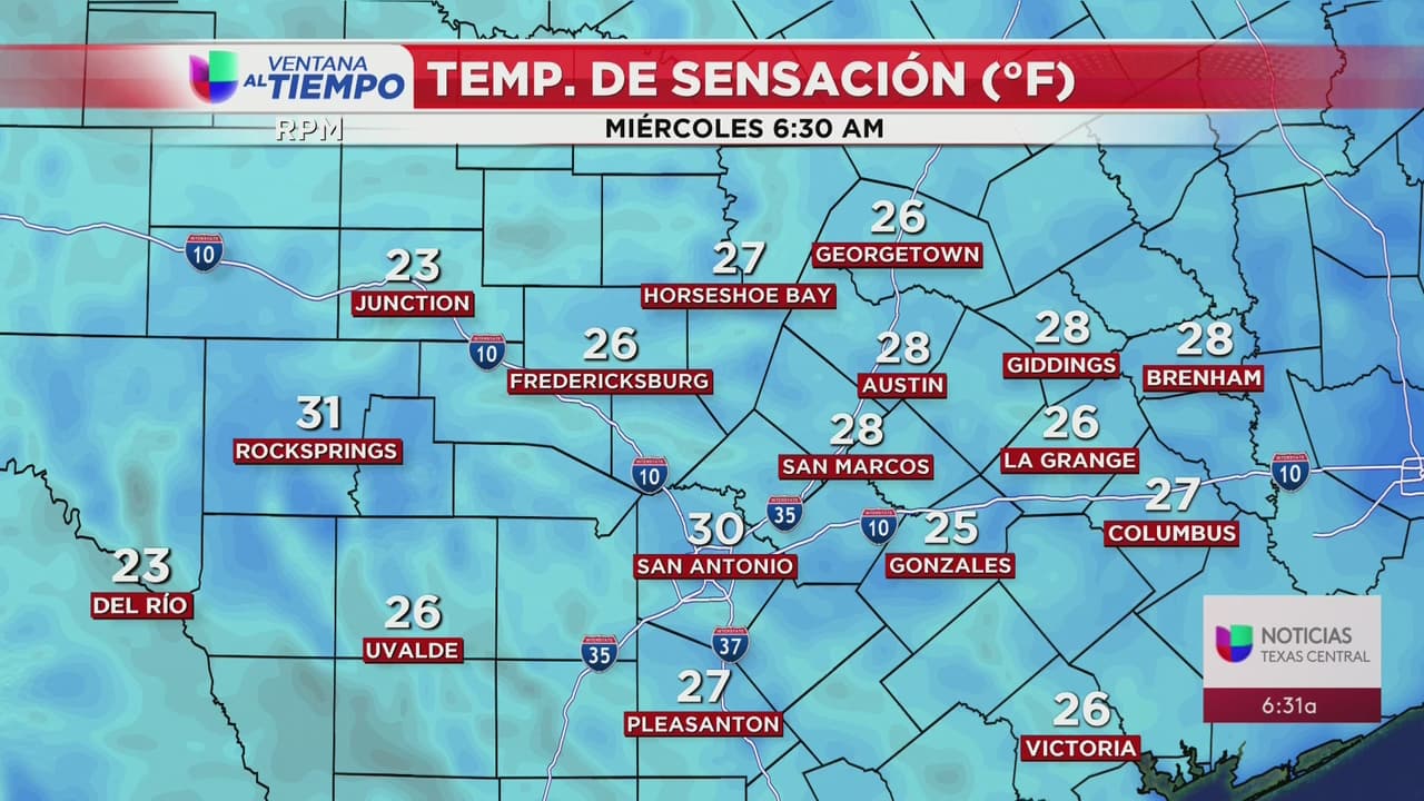 Se registraron 34 grados en Camp Mabry a las 6:25 a.m., pero las temperaturas aumentarán durante el día a un máximo de cerca de 57 grados.