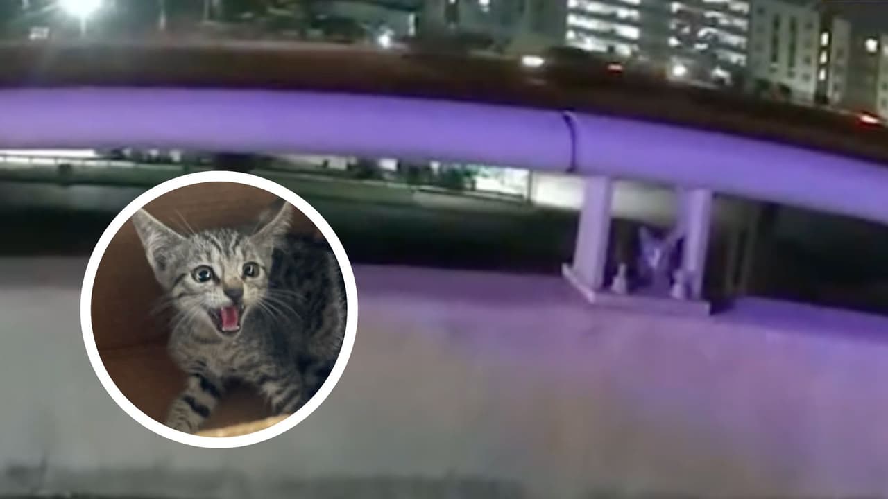 Un gatito estaba en un puente en plena autopista y podía caerse. Así lo rescataron