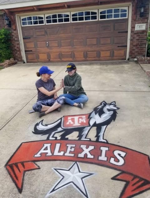 Algunos estudiantes se acercaron al complejo de departamentos donde el profesor corrió para apoyarlo y animarlo con carteles y porras.