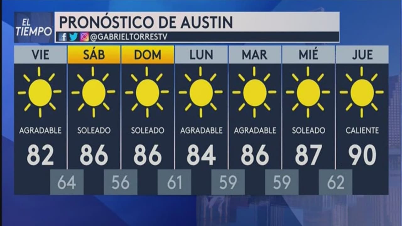 Finaliza la semana laboral con cielos despejados en la capital texana, se esperan máximas de 82°F. Para el fin de semana el termómetro permanecerá en el rango de los 80°F.