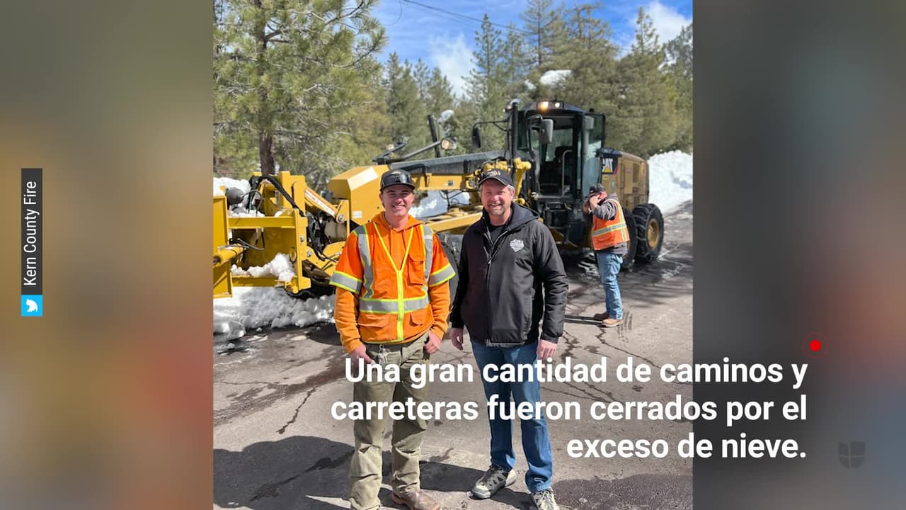 Bomberos del Condado de Kern y operadores estuvieron quitando la nieve de los caminos que llevan al lugar que los tuvo sin comunicación por la tormenta invernal.