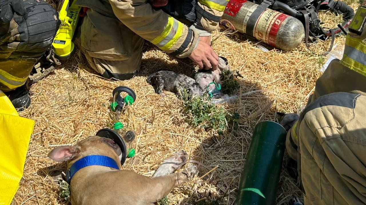 Al menos seis cachorros fueron rescatados y tuvieron que ser reanimados con oxígeno, al igual que su mamá.