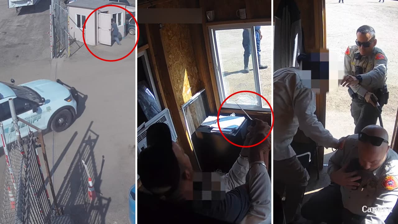 Las imágenes, publicadas por la Oficina del Sheriff del condado de Kern (KCSO), muestran al sospechoso Deven Karl Moore, de 25 años, diciéndo a los agentes que se mantengan alejados mientras retenía a un abuelito como rehén, en el estacionamiento de un depósito, o que lo mataría.