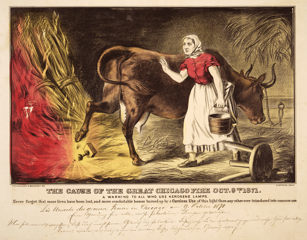 Se he especulado mucho acerca de la causa del incendio. El cuento más popular culpa a una vaca, propiedad de Patrick y Catherine O’Leary, una familia de inmigrantes irlandeses. Presuntamente, el animal derribó una linterna encendida.