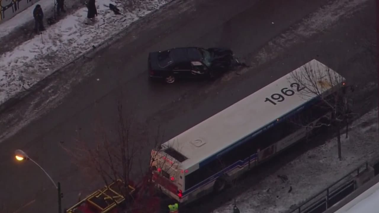 El siniestro se registró en Goose Island y, de acuerdo a información de testigos, un automóvil color negro transitaba a exceso de velocidad cuando el conductor perdió el control y chocó contra el autobús que terminó incrustado en un poste. Según las autoridades, los ocupantes del vehículo sedan se encuentran en condición de salud seria.