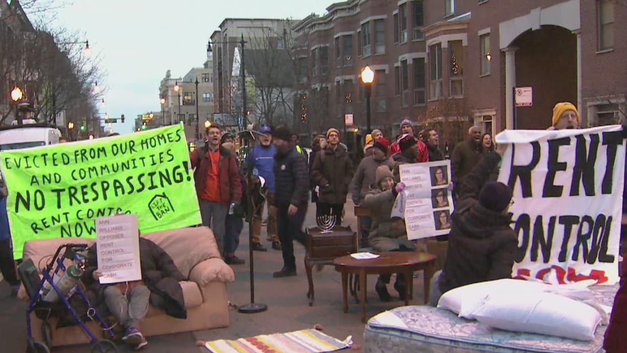 Activistas bloquean una avenida de Chicago para exigir que se acabe la prohibición al control de rentas