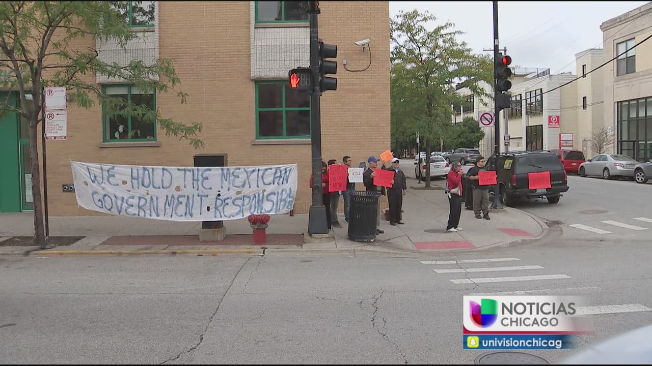 Un grupo de activistas protestó en el consulado mexicano por la matanza de estudiantes en México el dos de octubre de 1968.