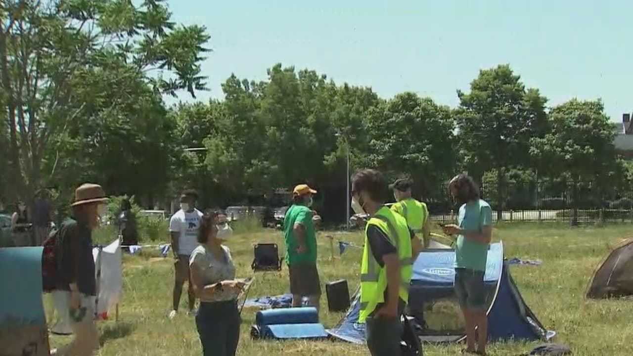 Decenas de personas se han dado cita la mañana de este jueves en un terreno baldío al sur de Chicago y han instalado carpas. Los manifestantes piden ser escuchados por la alcaldesa Lori Lightfoot y proponen que, en lugar de invertir dinero en departamento de policía, lo hagan en la construcción de casas para los más necesitados.