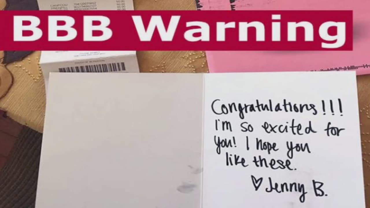Be wary of baby and motherhood gift cards that appear to be sent by a “Jenny B.” We are getting complaints about this questionable marketing scheme. https://t.co/GCGHU5Uq0D pic.twitter.com/LlYlivqZ2W