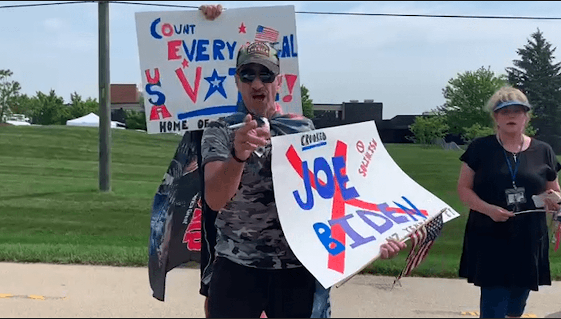 Al grito de: "Trump ganó las elecciones", esperan al presidente Joe Biden en Crystal Lake