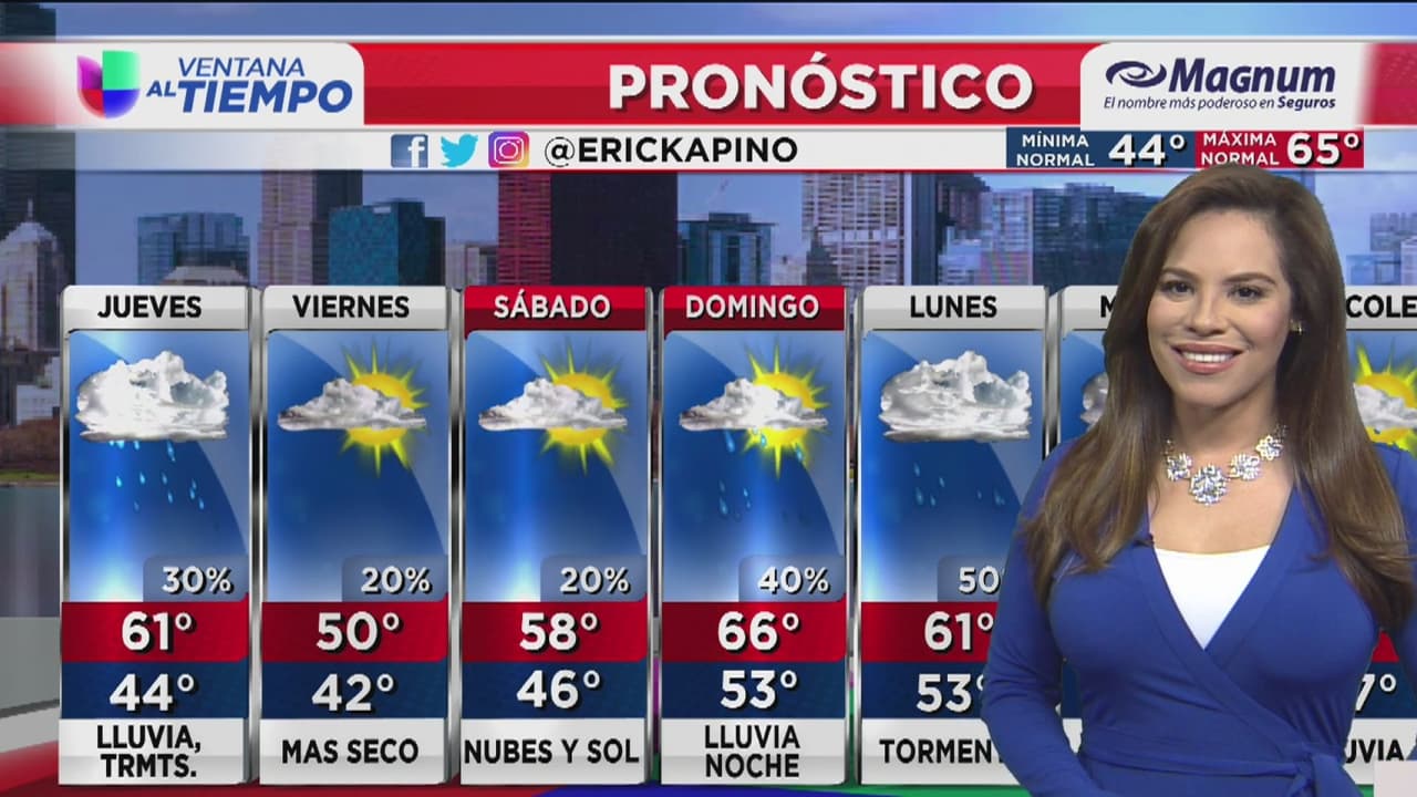 Se espera un 30% de probabilidades de lluvias en la ciudad. Las temperaturas se mantendrán frías y se situarán alrededor de los 44 y 61 grados Fahrenheit.