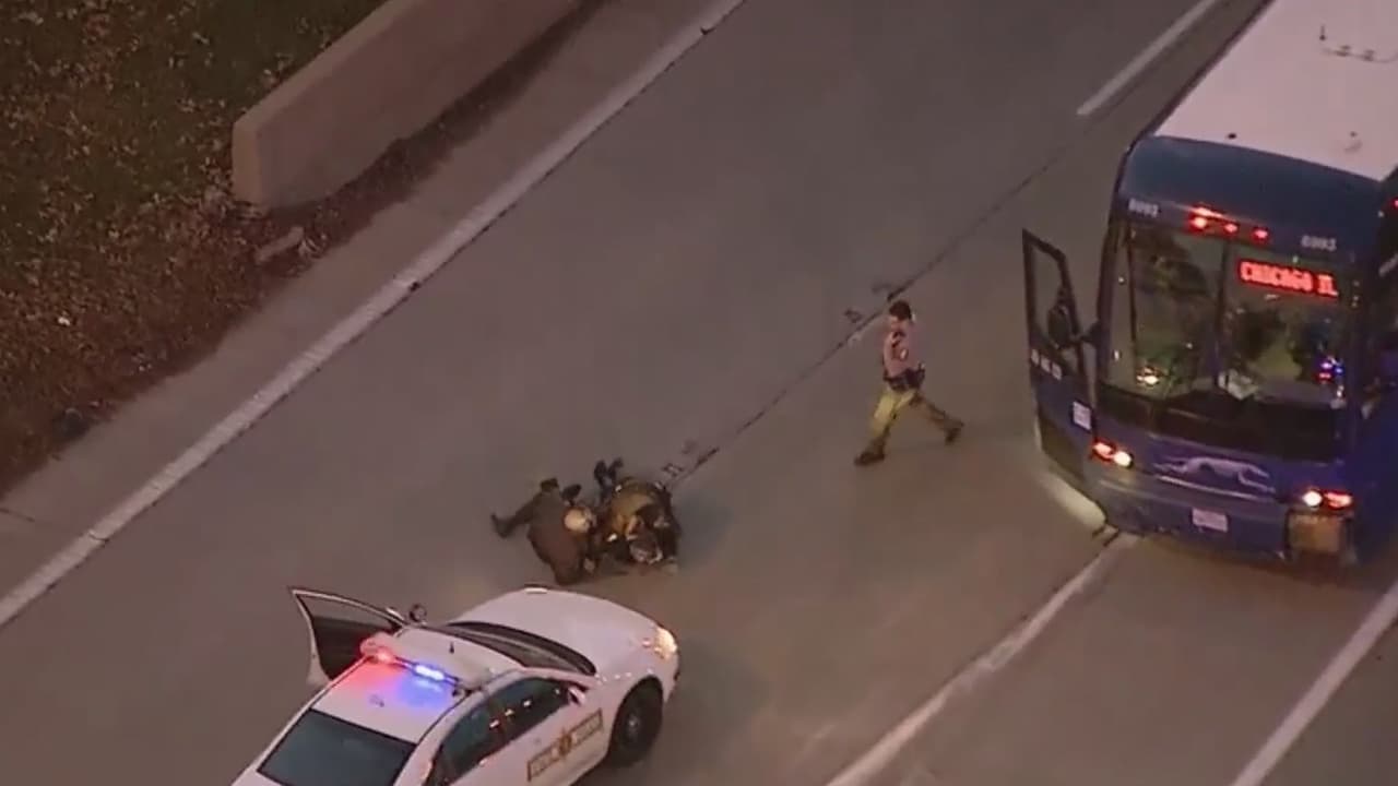El incidente ocurrió aproximadamente a las 4:23 pm de este miércoles sobre la Interestatal 90, en un autobús procedente de Milwaukee a Chicago. En imágenes aéreas se evidencia cuando el sospechoso que amenazó con detonar una bomba fue bajado del automotor y arrestado por las autoridades en plena autopista. Luego de momentos de tensión, la policía estatal determinó que se trató de una falsa alarma.
